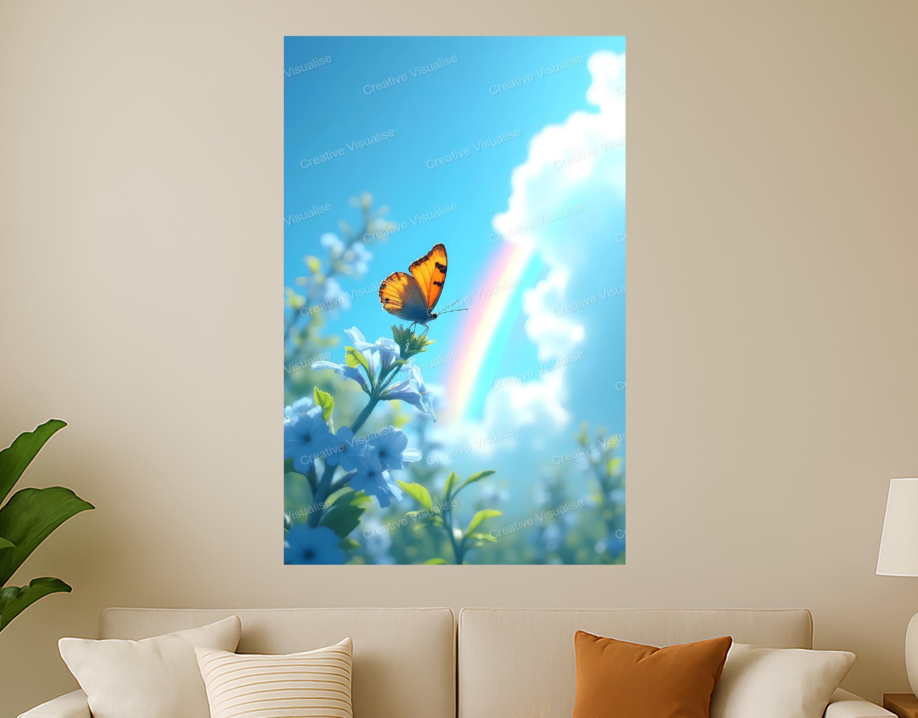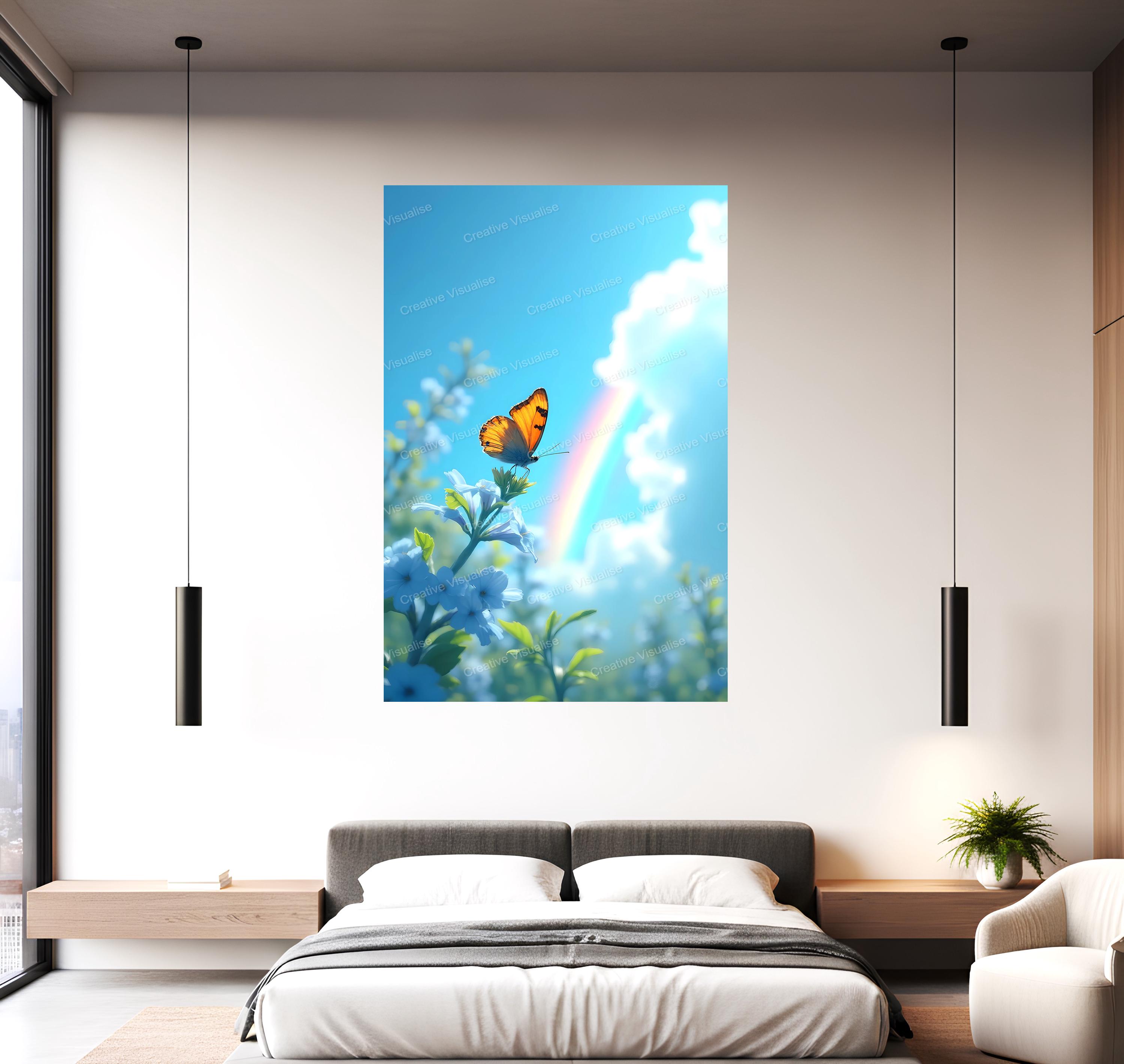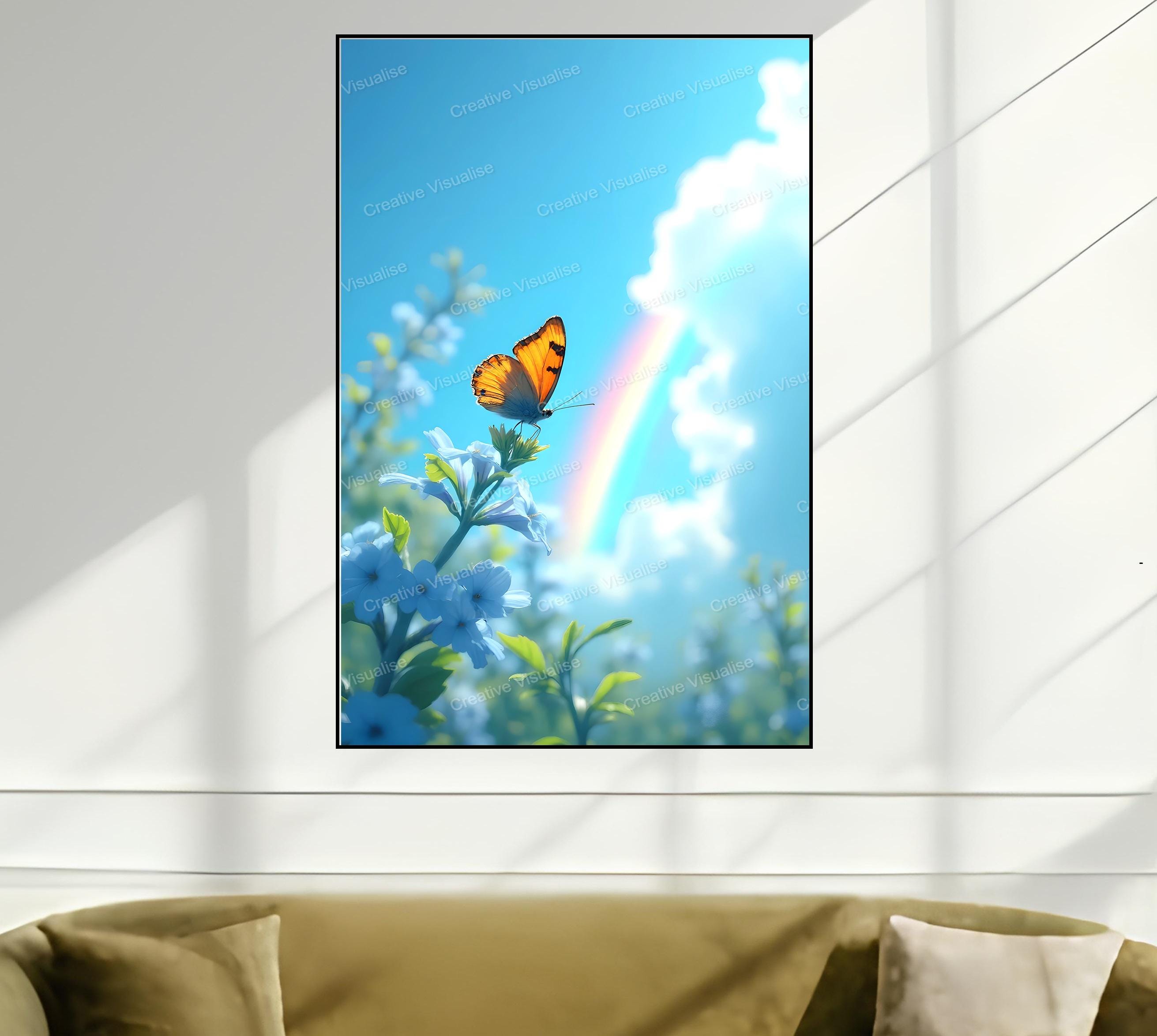 A butterfly in a rainbow sky digital print that can be easily downloaded and printed (not a physical item for delivery). The details of the digitally received images are about 11000 × 16000 pixels, 300 DPI, JPEG and PDF formats, AI artwork, very high resolution without a watermark, and large enough for professional posters, canvas prints, and wall decor. Please send me a message if you need another file format after the original files' delivery. This price is for personal use! For commercial use, please send me a message.